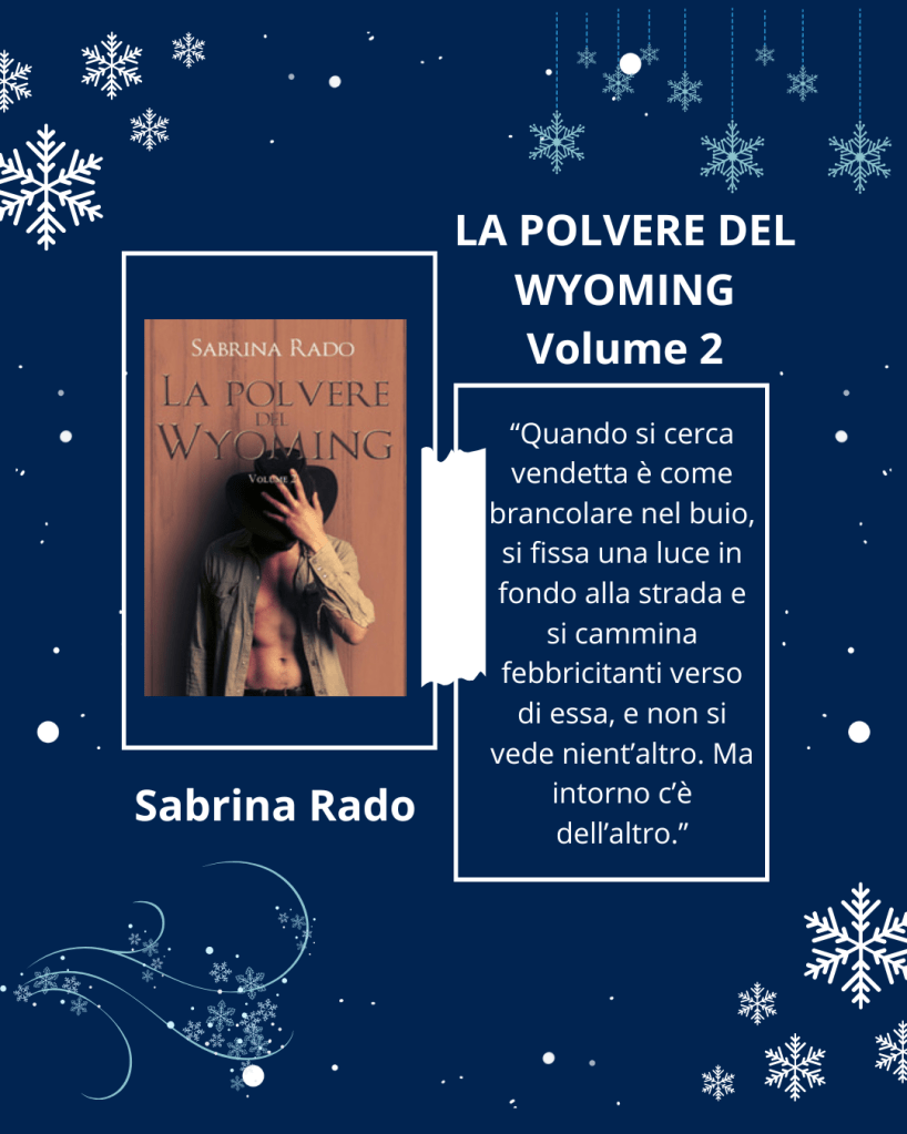 Come sempre vi lascio la quarta di copertina per incuriosirvi un po’: “Wyoming. L’azienda zootecnica Klifford viene colpita da un violento tornado, in seguito alla calamità giunge sul posto una squadra di periti assicurativi. Fra loro c’è la bella e misteriosa Savine, moglie del peggior nemico di Klayton. Fin dal principio l’affascinate ed enigmatico Klayton, titolare dell’azienda e Capo Dinastia Klifford, mostra profonda ostilità nei confronti della ragazza poiché la ritiene un ostacolo al suo piano di truffa e vendetta contro l’Assicurazione; l’uomo instaura un rapporto ambiguo, fatto di sabotaggi, intimidazioni e prepotenti tentativi di seduzione. Dopo molte e imprevedibili disavventure, il muro di menzogne che separa i protagonisti comincia a sgretolarsi e la storia prende una piega differente: diventa un intenso e sensuale rapporto d’amore che si sviluppa in un ambiente ostile, fra faide, imposizione di leggi private e scontri per il controllo del territorio. La polvere del Wyoming è un romanzo dinamico, pieno di colpi di scena, dal ritmo incalzante e suggestivo che si evolve in tre volumi per dare all’amore il giusto valore. In queste pagine niente è come sembra, tutto viene messo in continua discussione, sentimenti compresi.”